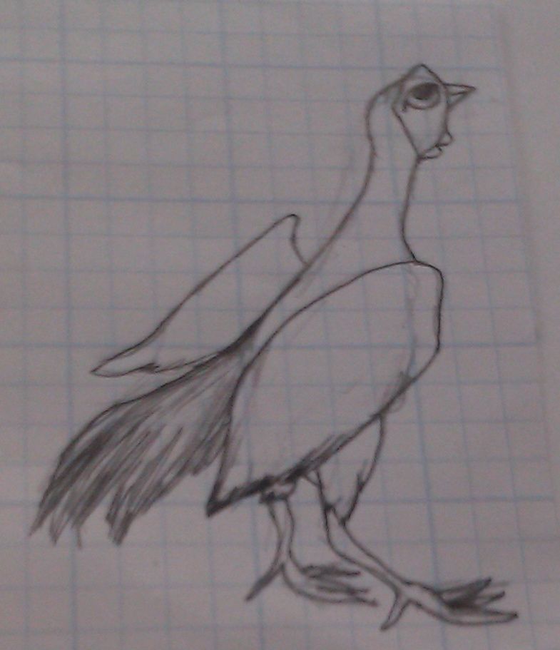 The other way I went is of a young chicken looking up at the birds flying in the sky copying them only to learn that is a grounded bird.